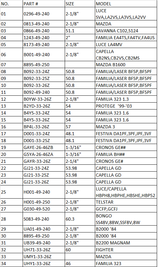 DISC BRAKE SEAL KIT - MAZDA