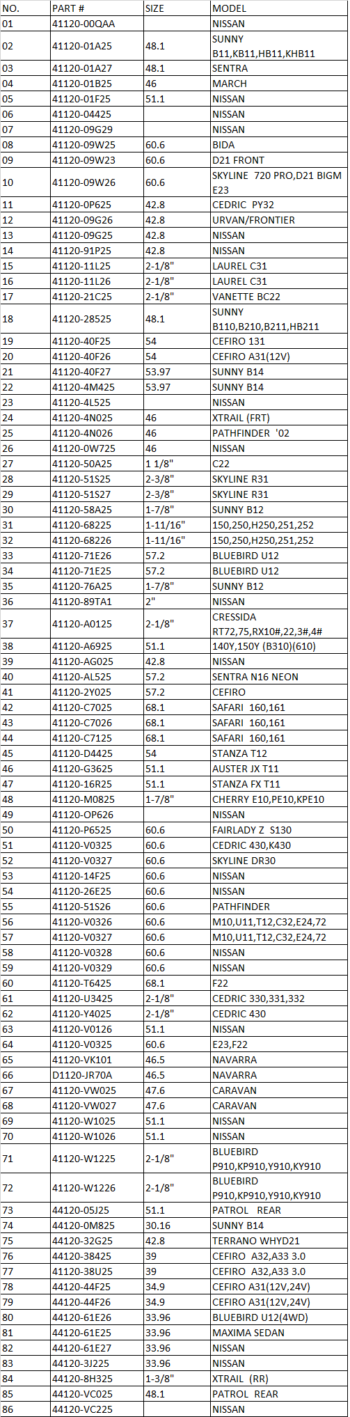 PRODUCT| OEM: | 41120-C7025/41120-C7026/41120-C7125 |