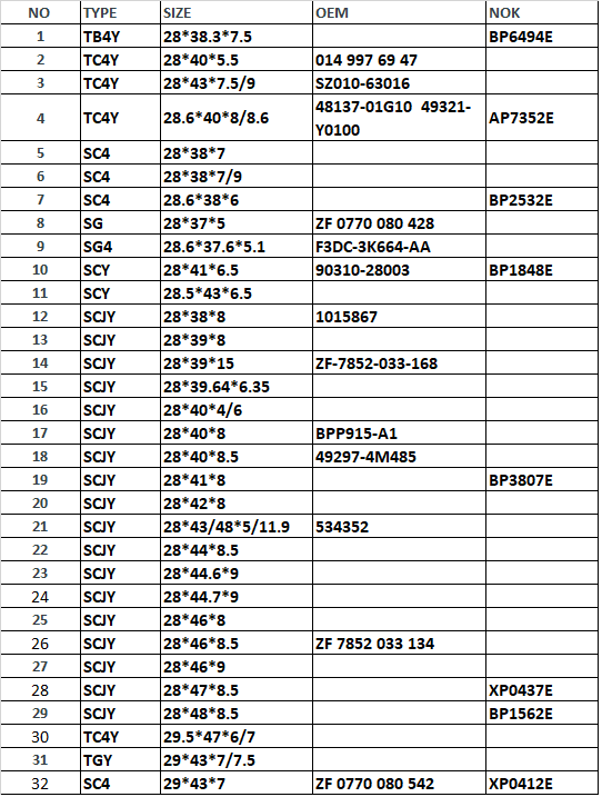 28 & 29MM SIZE POWER STEERING SEAL: