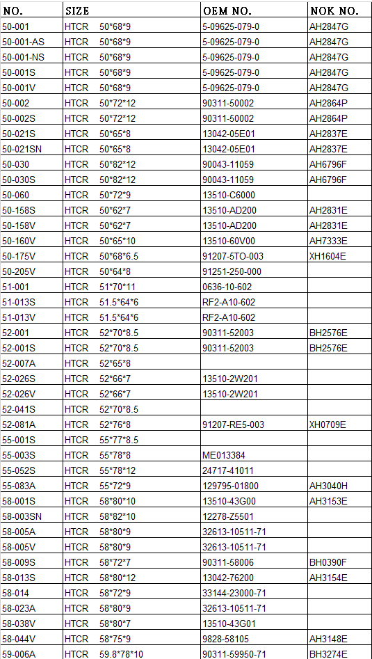 OTHER AVAILABLE HTCR OIL SEAL ( DIA 50 ~ 59MM ):