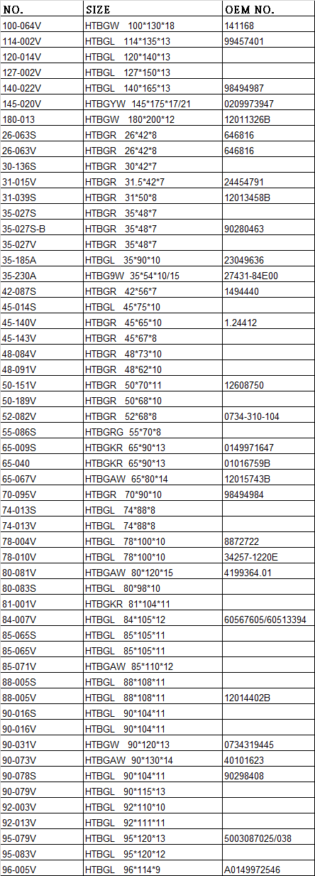 OTHER AVAILABLE HTBG TYPE SEAL :