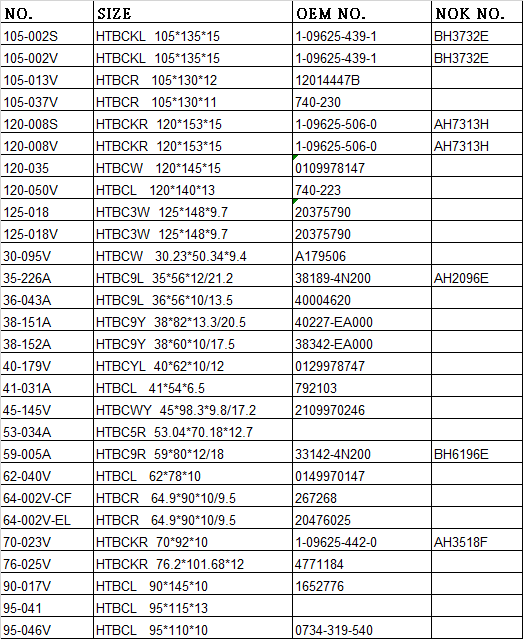 OTHER AVAILABLE HTBC TYPE SEAL :