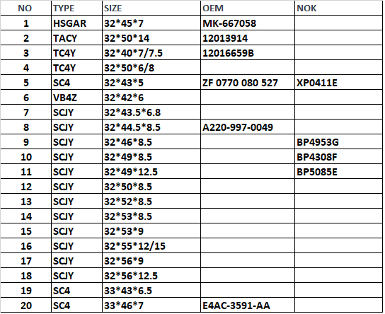 32 & 33MM SIZE POWER STEERING SEAL: