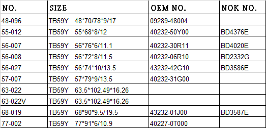 OTHER AVAILABLE TB59Y OIL SEAL :