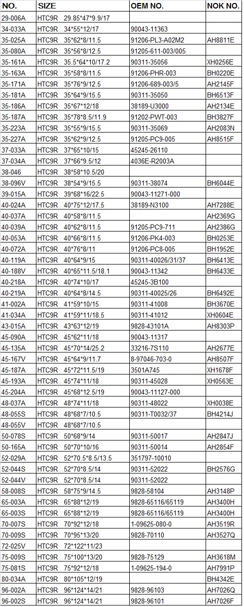 OTHER AVAILABLE HTC9R SHAFT SEAL :