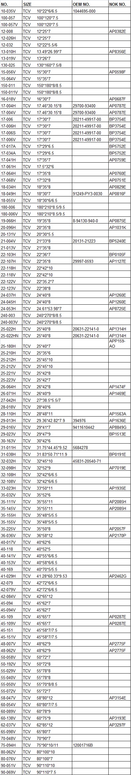 OTHER AVAILABLE TCV OIL SEAL :