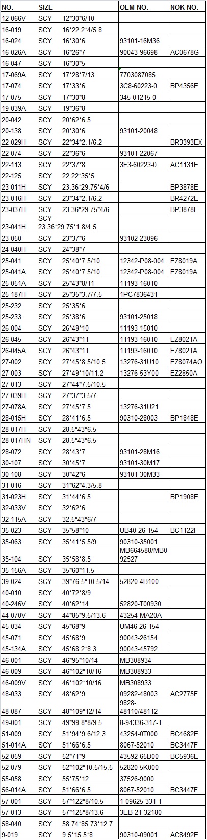 OTHER AVAILABLE SCY OIL SEAL :