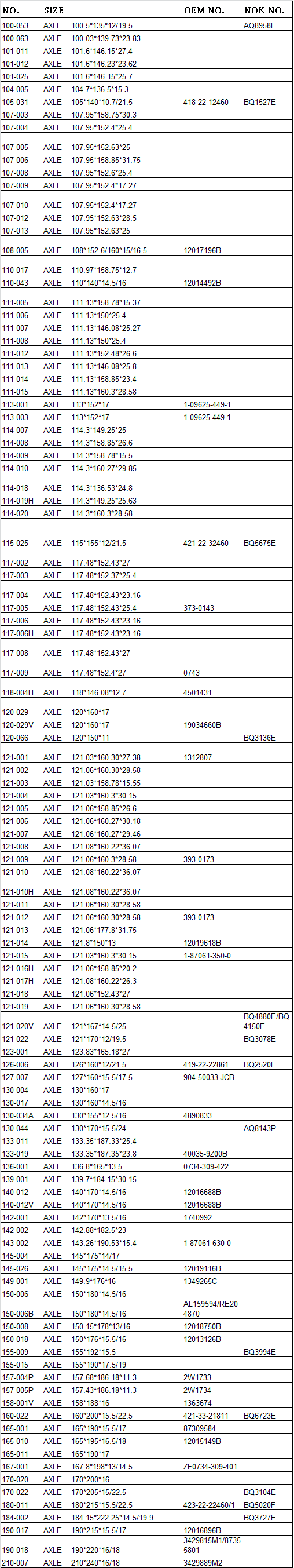 THER AVAILABLE AXLE OIL SEAL (DIA. 100~210 MM)