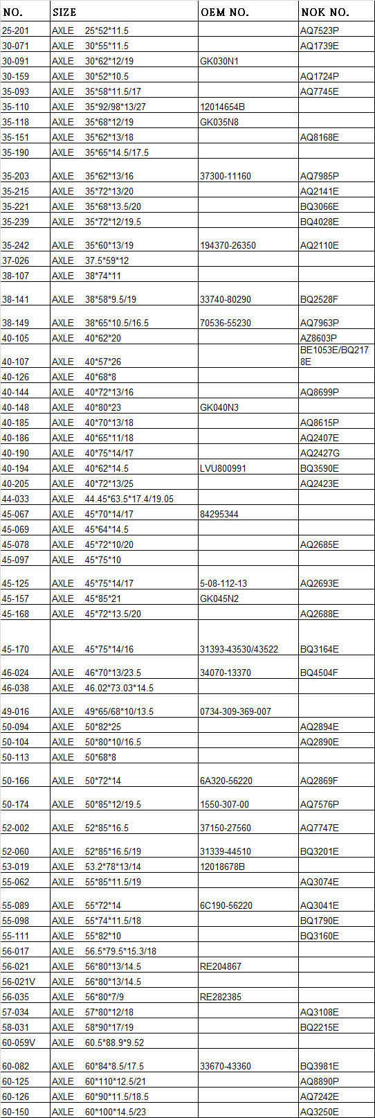 OTHER AVAILABLE AXLE TYPE SEAL (DIA 25 ~60 MM):