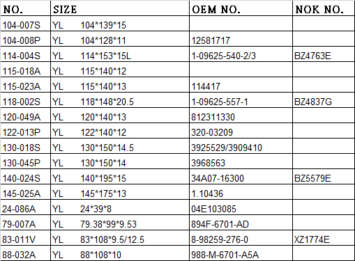 OTHER AVAILABLE YL TYPE SEAL :
