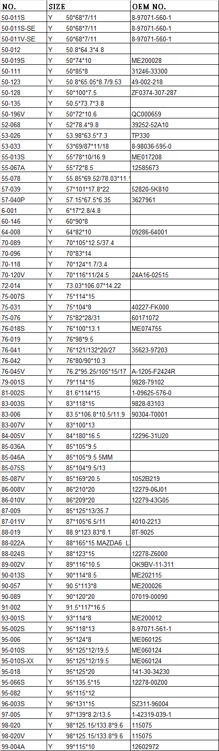 OTHER AVAILABLE Y OIL SEAL:(DIA 50~ 99MM)